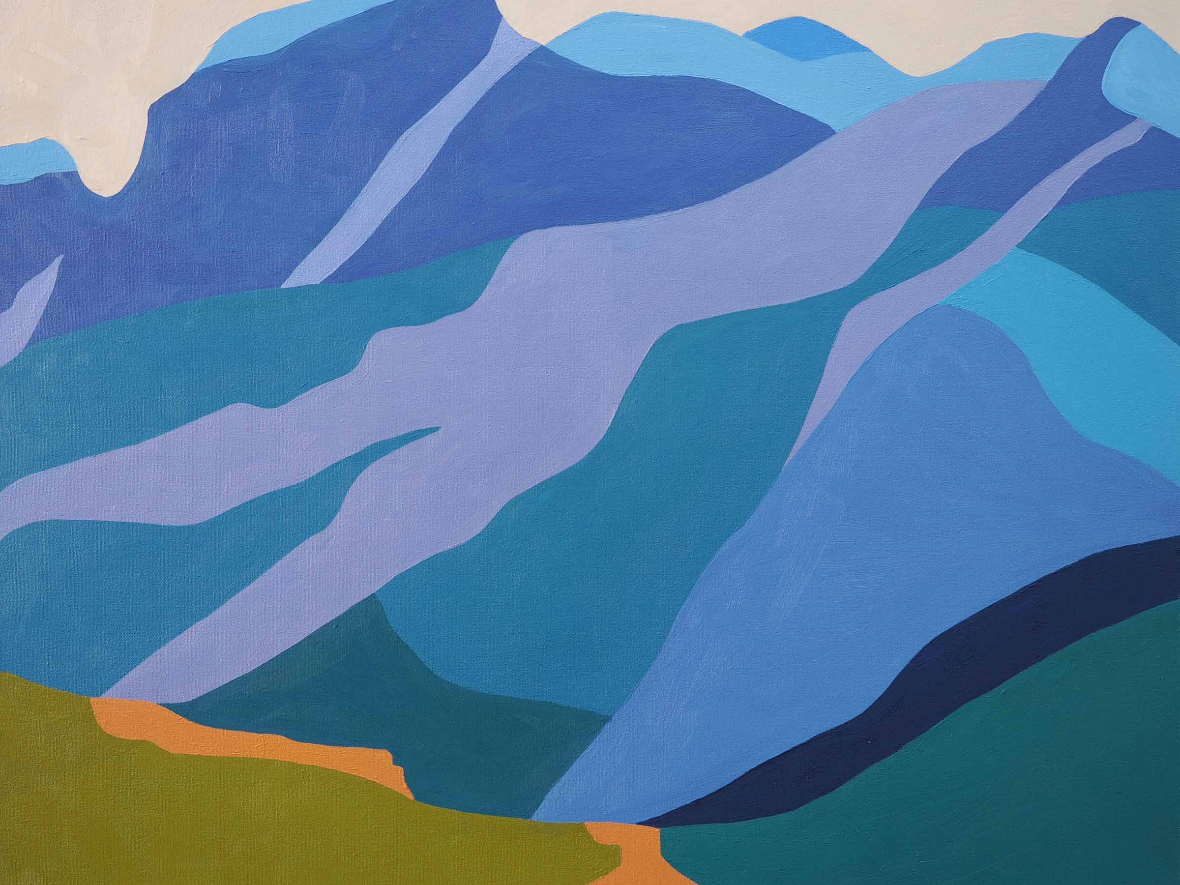 Horizons Unbound is an exploration of the emotional resonance and visual poetry found in the natural world. While rooted in physical landscapes I’ve encountered, from mountains and deserts to seascapes, these paintings are not depictions in the traditional sense but rather, they are abstracted interpretations that seek to evoke the stillness, majesty and impermanence of nature through colour, form and texture. Drawing on personal experiences in the landscape, I aim to distil the essence of a place, its mood, energy, and subtle transformations, rather than reproduce its detailed appearance. Rhythmic lines, soft transitions, and bold areas of colour echo the interplay of light and shadow, offering a visual language that reflects both the outer environment and our inner emotional landscapes. Through Horizons Unbound, I hope to share a visual meditation on our shared connection to the land: a celebration of its power and fragility. I invite viewers to pause, reflect, and feel their way into the timeless stories carried in light, shadow, and horizon lines, while exploring the powerful impact that colour, form, and creativity have on our wellbeing.